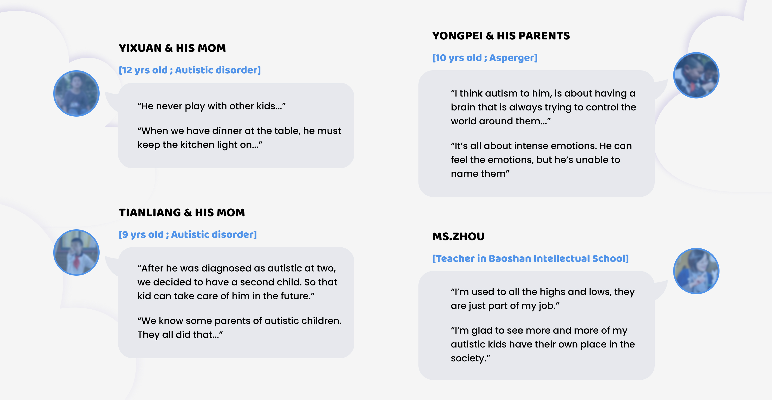 User personas are created based on two user groups: Aspergers, and less affected children with autistic disorder from 10-18 years old. Here's an example.