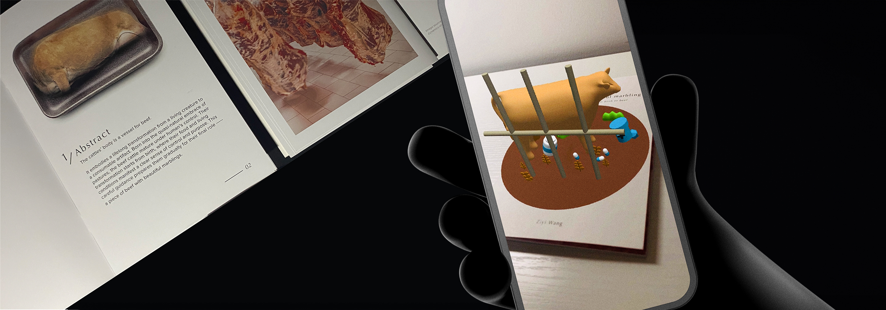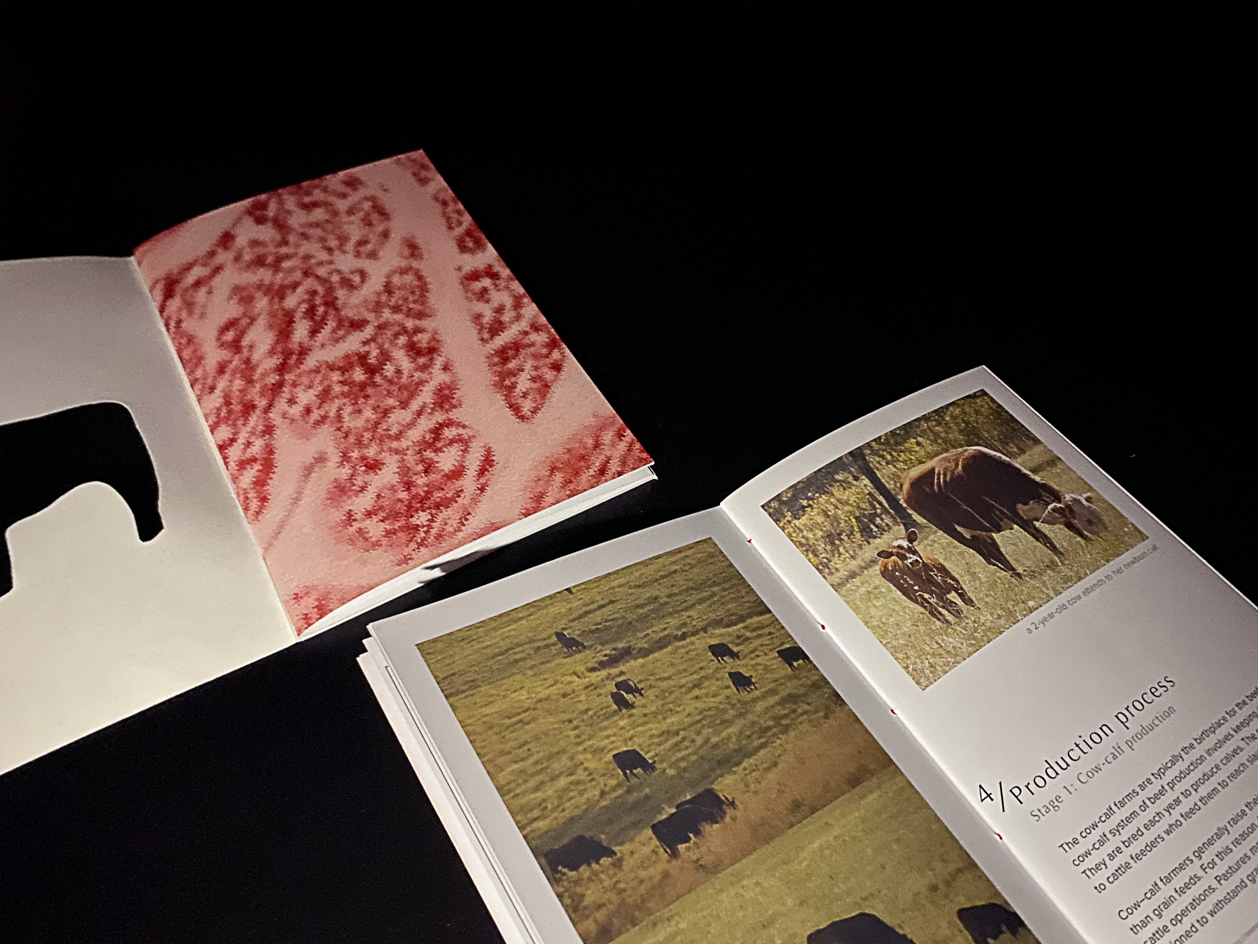 Their transformation starts from birth. Human's careful guidance prepares them gradually for their final role ----- a piece of beef with beautiful marblings. This project is a research-based interactive zine that embodied a life long journey of a cattle from birth to beef