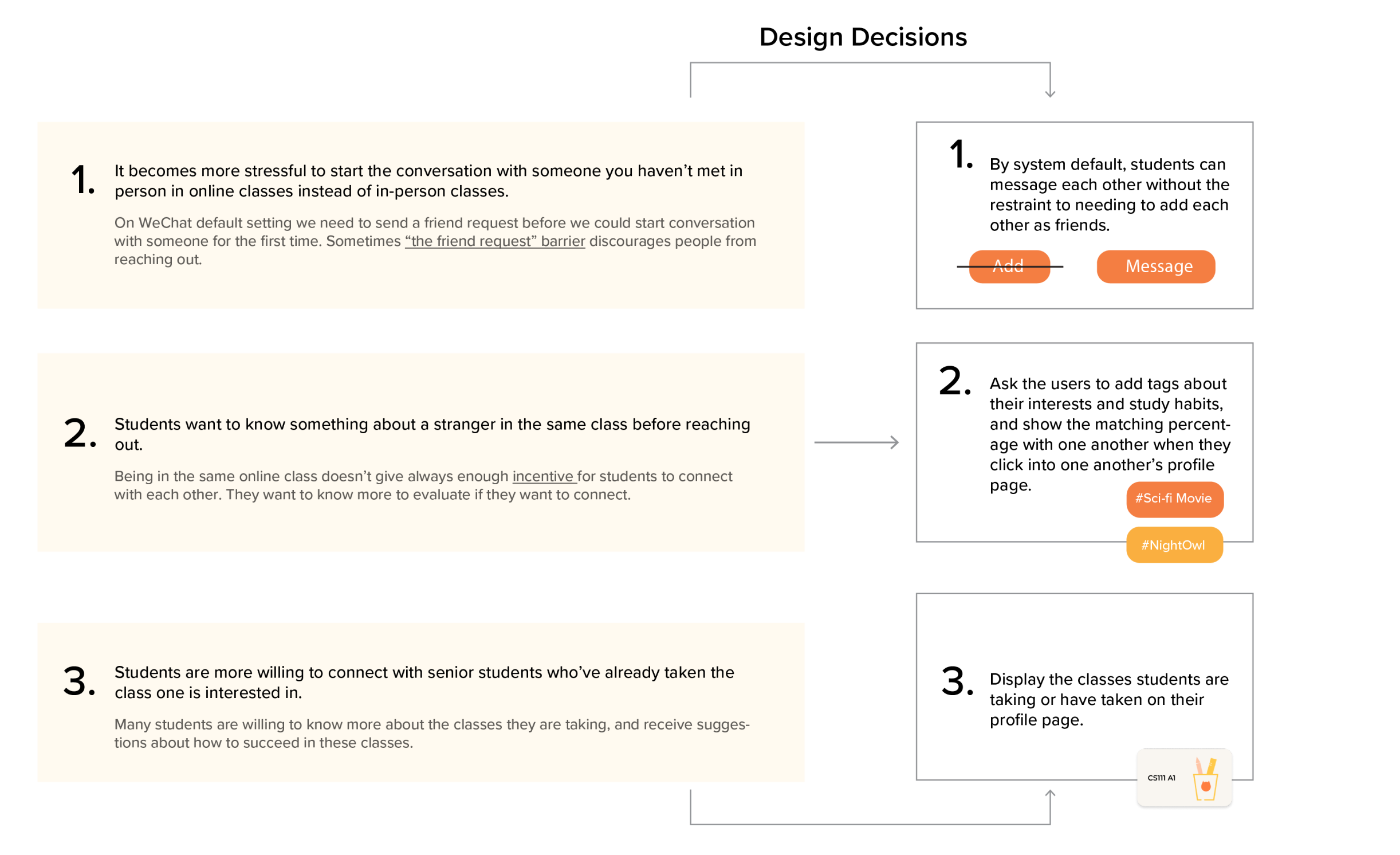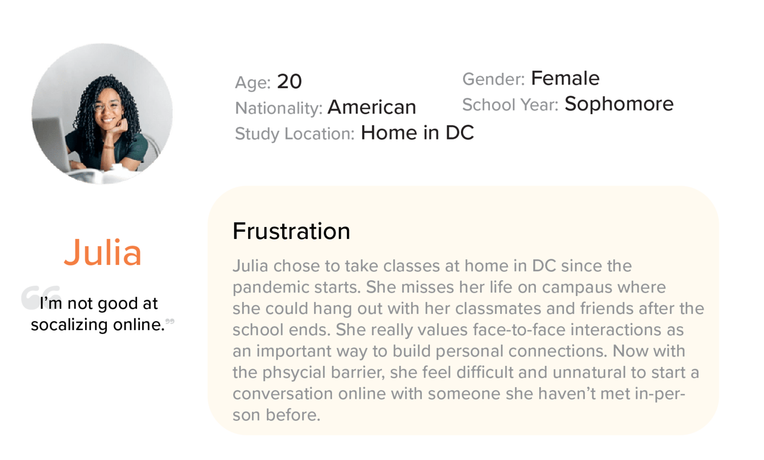 To get a better understanding of students’ current situation under remote learning, we sent out a survey on Aug. 28, 2020. We received 2343 responses and get chance to talk with 3 of our participants. Then we generated 3 insight and leveraged affinity diagram to analyze and make sense of the data we collected