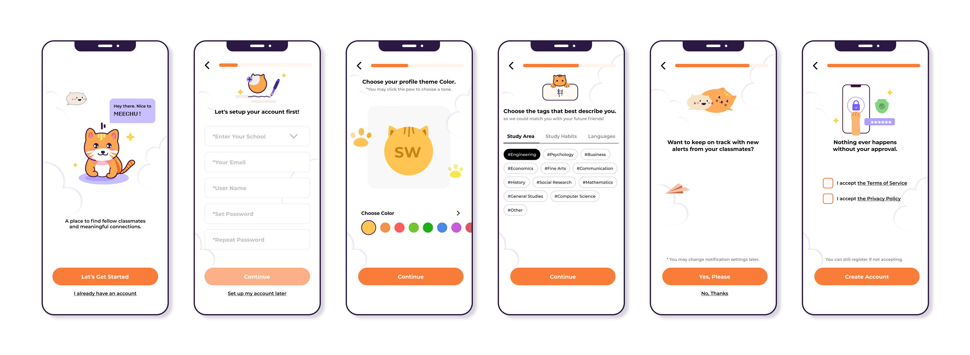 The onboarding steps are short and fun. It involves setting your account information, choosing profile picture style, and selecting tags that best describes your interests.
