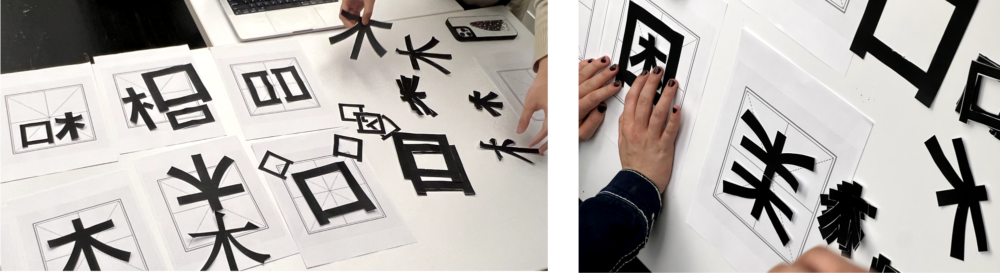 We laser-cut the base components to suit various Hanzi structures while allowing ample creative space. Various materials and finishes were tested.