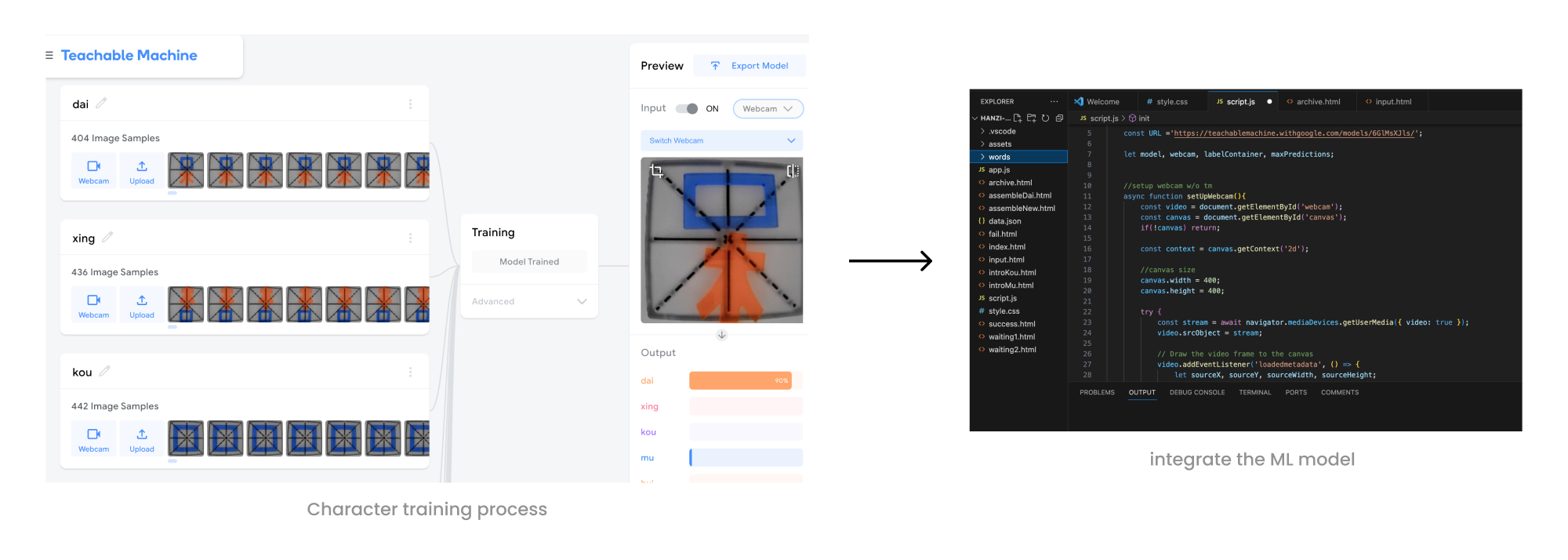 The tech part is web based. I integrated AI image recognition into the javascript code, and use the machine learning model to read the results of players’ character placement.